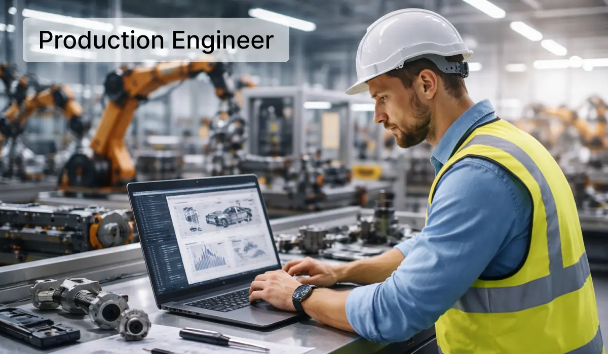 Role and Responsibilities of a Production Engineer - A production engineer is responsible for managing manufacturing processes and ensuring that production operations run efficiently and safely. They analyze production workflows, optimize manufacturing processes, and implement strategies to improve productivity. Production engineers also coordinate with design, quality, and maintenance teams to ensure smooth production operations. Their responsibilities include monitoring production performance, reducing manufacturing costs, improving product quality, and ensuring compliance with safety and industry standards. Read More